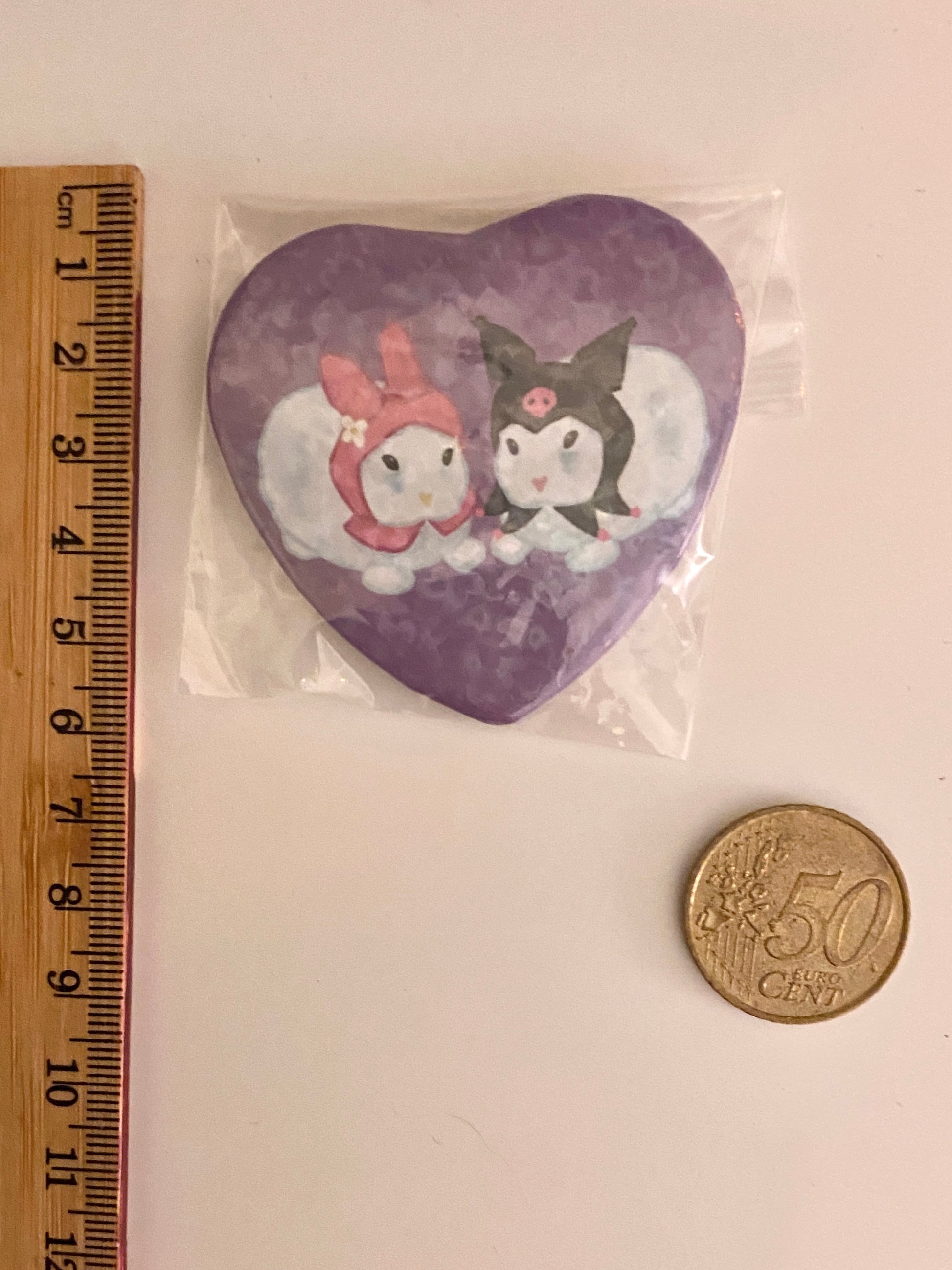 53*57mm purple heart shaped badge with heart foil with silver pin back